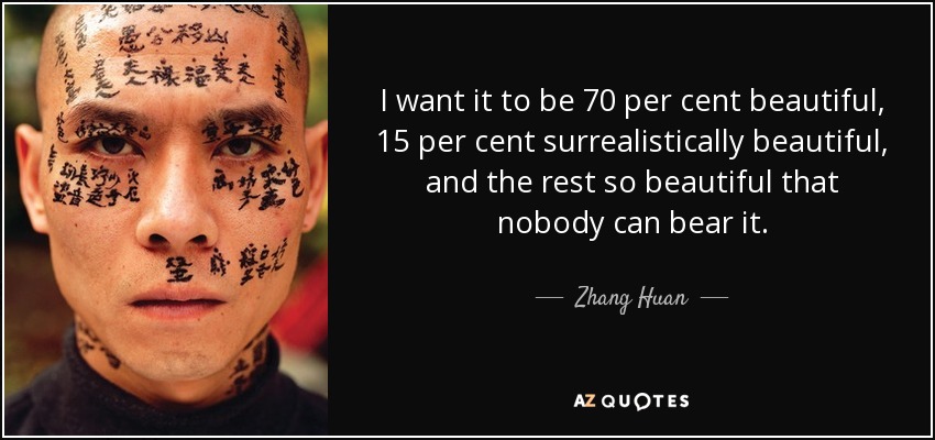 I want it to be 70 per cent beautiful, 15 per cent surrealistically beautiful, and the rest so beautiful that nobody can bear it.