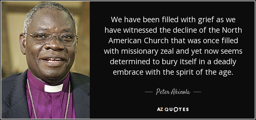 We have been filled with grief as we have witnessed the decline of the North American Church that was once filled with missionary zeal and yet now seems determined to bury itself in a deadly embrace with the spirit of the age.