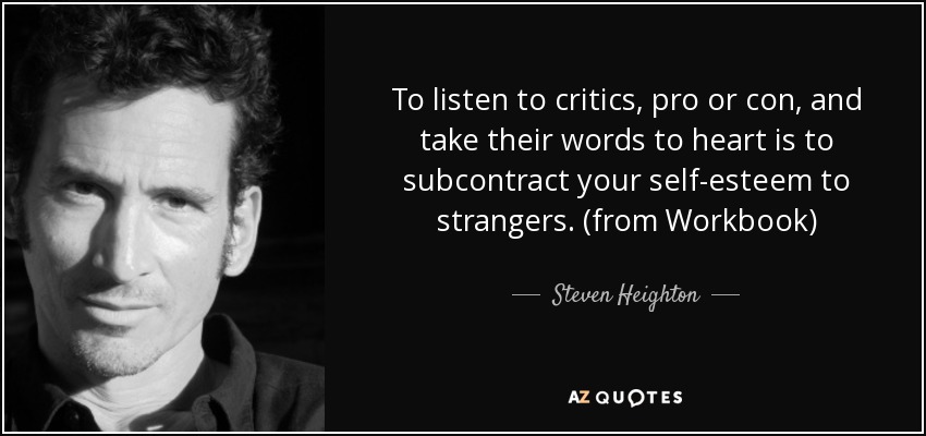 To listen to critics, pro or con, and take their words to heart is to subcontract your self-esteem to strangers. (from Workbook)