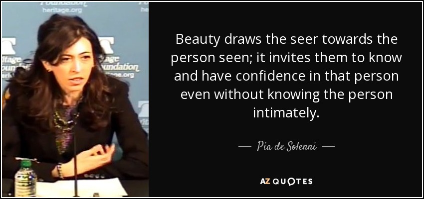 Beauty draws the seer towards the person seen; it invites them to know and have confidence in that person even without knowing the person intimately.