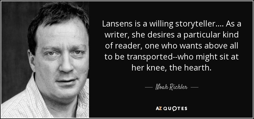 Lansens is a willing storyteller.... As a writer, she desires a particular kind of reader, one who wants above all to be transported--who might sit at her knee, the hearth.
