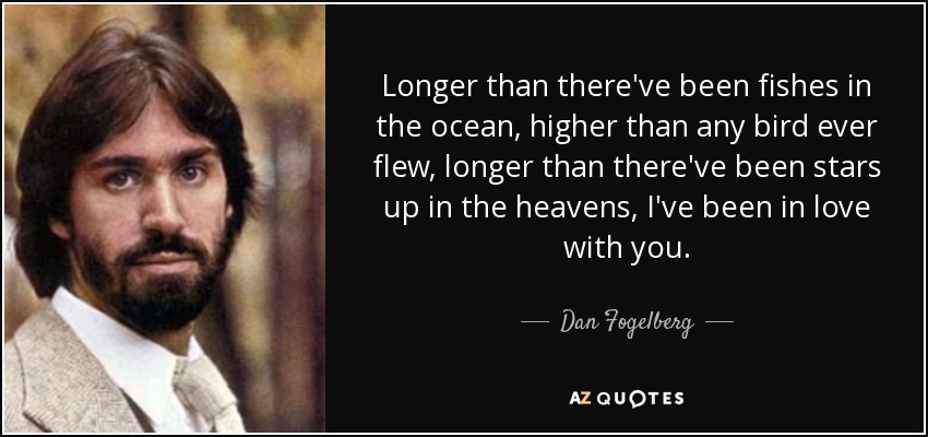 Longer than there've been fishes in the ocean, higher than any bird ever flew, longer than there've been stars up in the heavens, I've been in love with you.