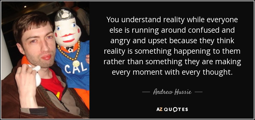 You understand reality while everyone else is running around confused and angry and upset because they think reality is something happening to them rather than something they are making every moment with every thought.