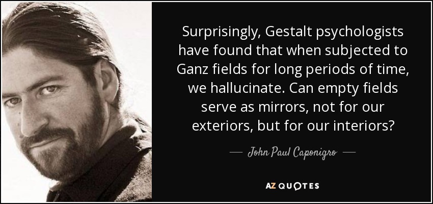 Surprisingly, Gestalt psychologists have found that when subjected to Ganz fields for long periods of time, we hallucinate. Can empty fields serve as mirrors, not for our exteriors, but for our interiors?