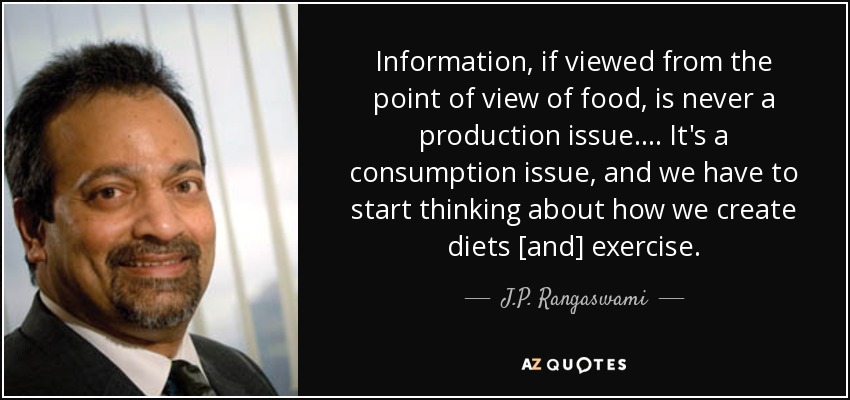 Information, if viewed from the point of view of food, is never a production issue. ... It's a consumption issue, and we have to start thinking about how we create diets [and] exercise.
