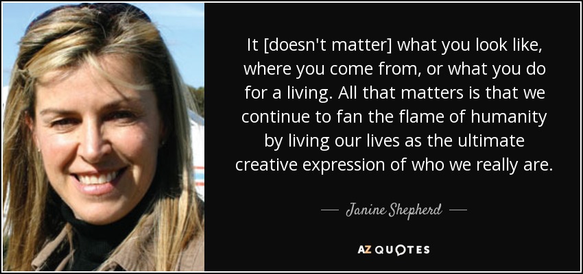 It [doesn't matter] what you look like, where you come from, or what you do for a living. All that matters is that we continue to fan the flame of humanity by living our lives as the ultimate creative expression of who we really are.