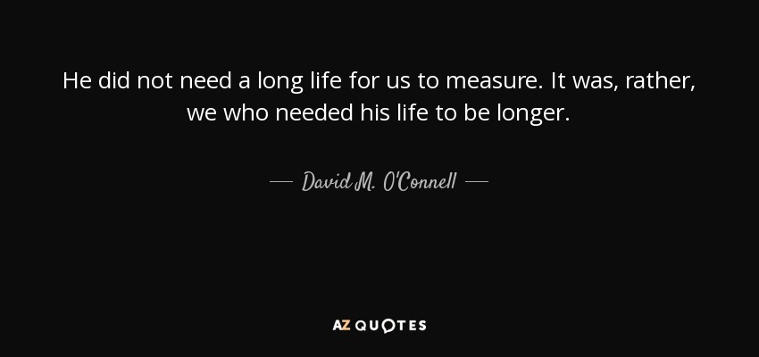 He did not need a long life for us to measure. It was, rather, we who needed his life to be longer.