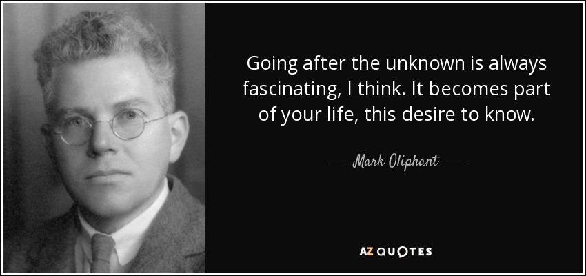 Going after the unknown is always fascinating, I think. It becomes part of your life, this desire to know.