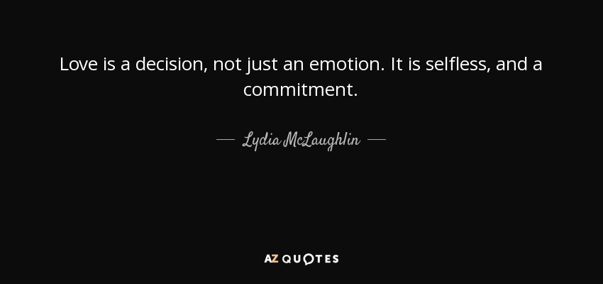 Love is a decision, not just an emotion. It is selfless, and a commitment.