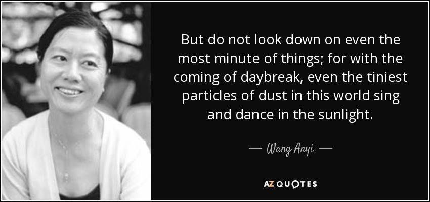 But do not look down on even the most minute of things; for with the coming of daybreak, even the tiniest particles of dust in this world sing and dance in the sunlight.