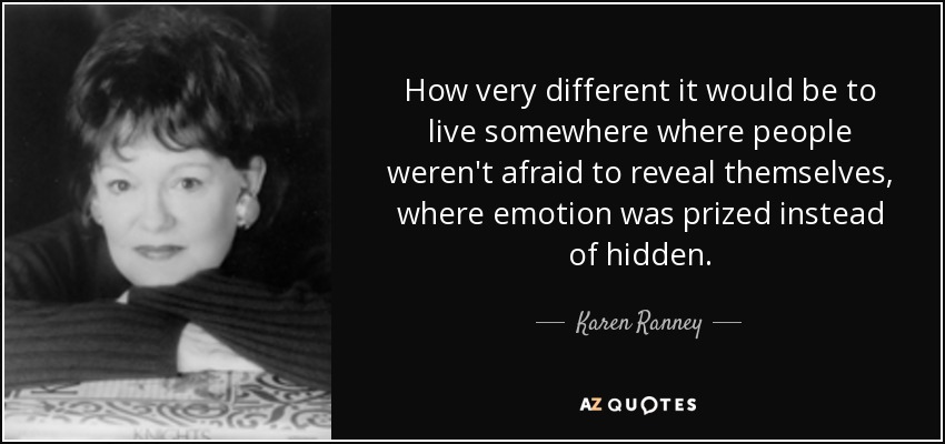How very different it would be to live somewhere where people weren't afraid to reveal themselves, where emotion was prized instead of hidden.