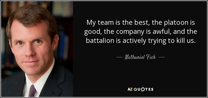 My team is the best, the platoon is good, the company is awful, and the battalion is actively trying to kill us.