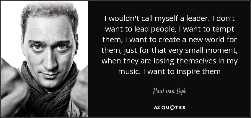 I wouldn't call myself a leader. I don't want to lead people, I want to tempt them, I want to create a new world for them, just for that very small moment, when they are losing themselves in my music. I want to inspire them