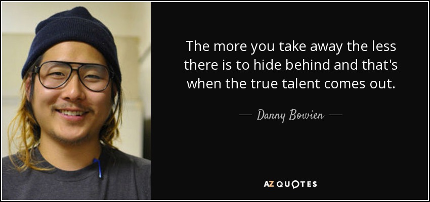 The more you take away the less there is to hide behind and that's when the true talent comes out.