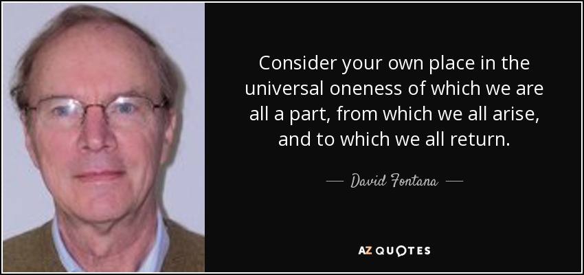 Consider your own place in the universal oneness of which we are all a part, from which we all arise, and to which we all return.