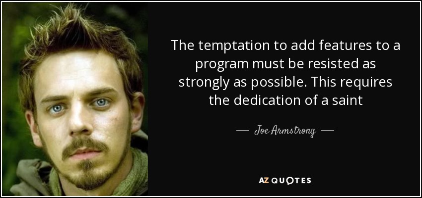 The temptation to add features to a program must be resisted as strongly as possible. This requires the dedication of a saint