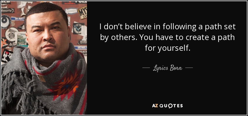 I don’t believe in following a path set by others. You have to create a path for yourself.