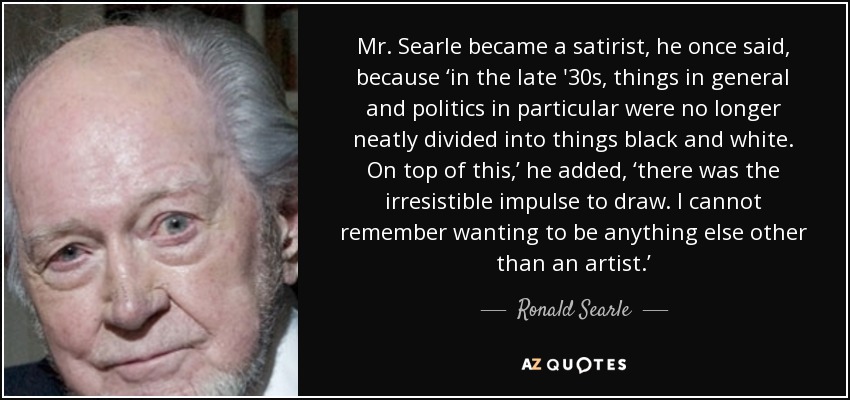 Mr. Searle became a satirist, he once said, because ‘in the late '30s, things in general and politics in particular were no longer neatly divided into things black and white. On top of this,’ he added, ‘there was the irresistible impulse to draw. I cannot remember wanting to be anything else other than an artist.’