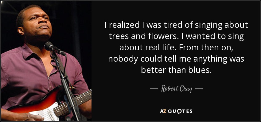I realized I was tired of singing about trees and flowers. I wanted to sing about real life. From then on, nobody could tell me anything was better than blues.