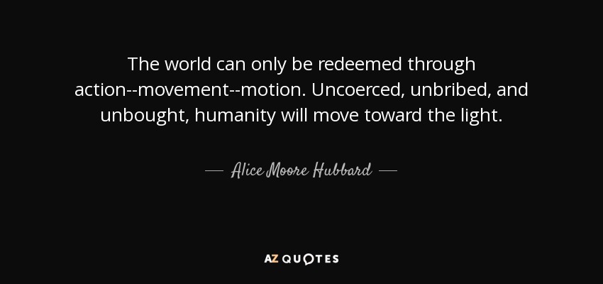 The world can only be redeemed through action--movement--motion. Uncoerced, unbribed, and unbought, humanity will move toward the light.