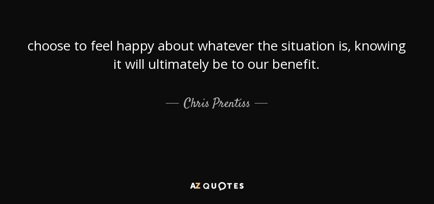 choose to feel happy about whatever the situation is, knowing it will ultimately be to our benefit.