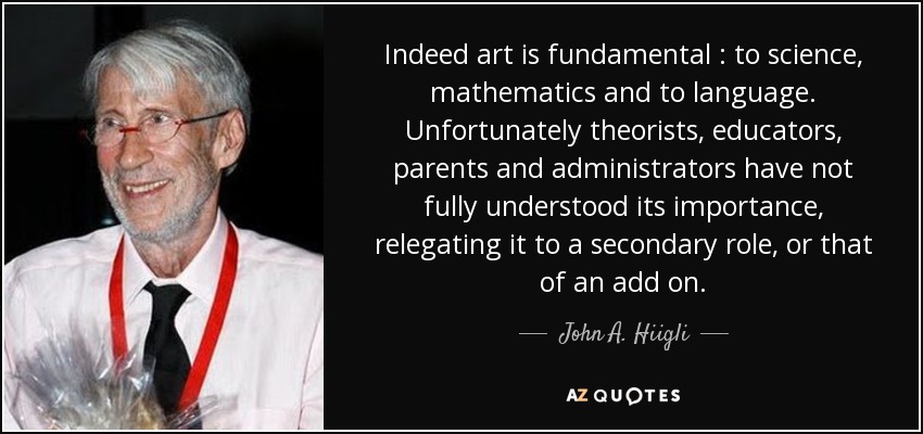 Indeed art is fundamental : to science, mathematics and to language. Unfortunately theorists, educators, parents and administrators have not fully understood its importance, relegating it to a secondary role, or that of an add on.