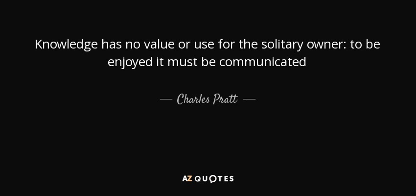 Knowledge has no value or use for the solitary owner: to be enjoyed it must be communicated