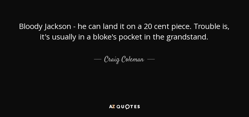 Bloody Jackson - he can land it on a 20 cent piece. Trouble is, it's usually in a bloke's pocket in the grandstand.