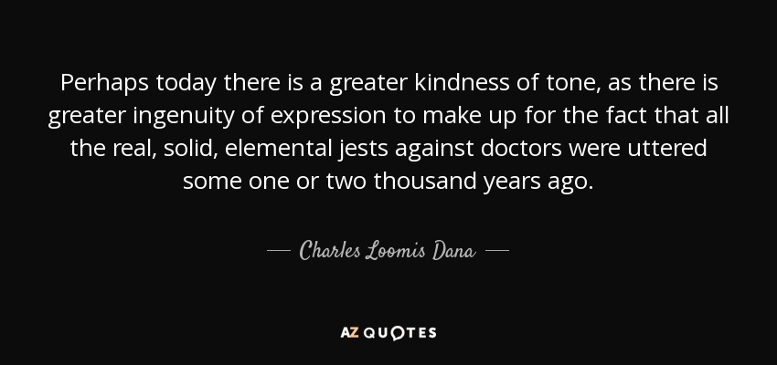 Perhaps today there is a greater kindness of tone, as there is greater ingenuity of expression to make up for the fact that all the real, solid, elemental jests against doctors were uttered some one or two thousand years ago.