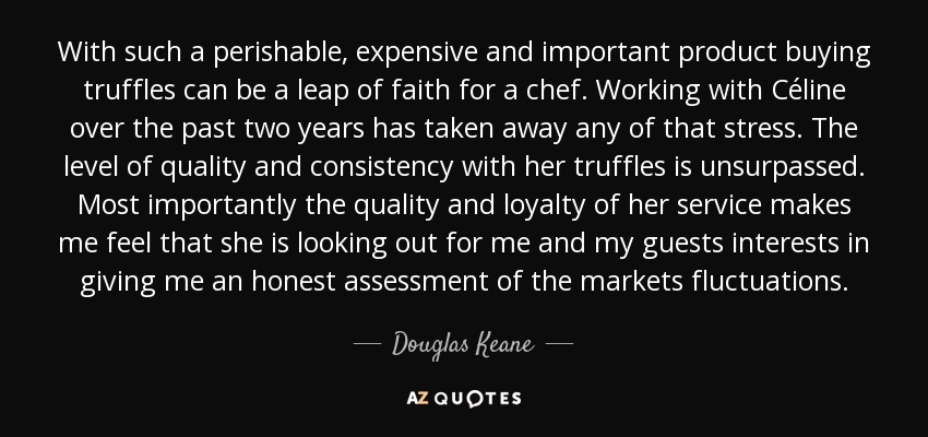 With such a perishable, expensive and important product buying truffles can be a leap of faith for a chef. Working with Céline over the past two years has taken away any of that stress. The level of quality and consistency with her truffles is unsurpassed. Most importantly the quality and loyalty of her service makes me feel that she is looking out for me and my guests interests in giving me an honest assessment of the markets fluctuations.