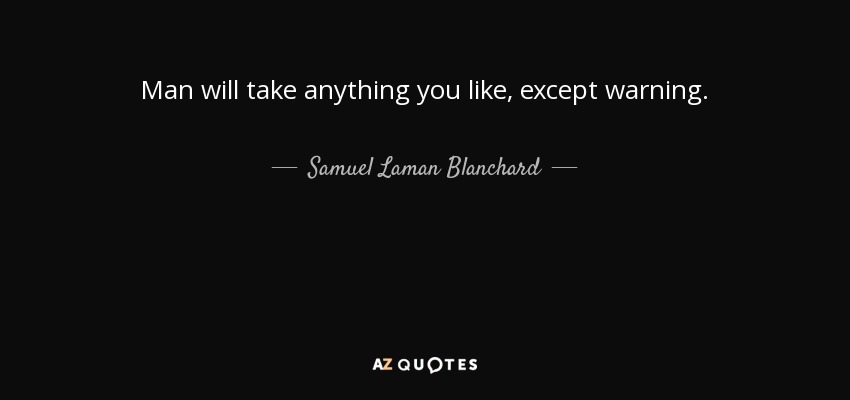 Man will take anything you like, except warning.