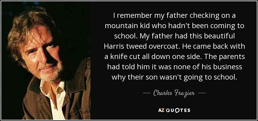 I remember my father checking on a mountain kid who hadn't been coming to school. My father had this beautiful Harris tweed overcoat. He came back with a knife cut all down one side. The parents had told him it was none of his business why their son wasn't going to school.