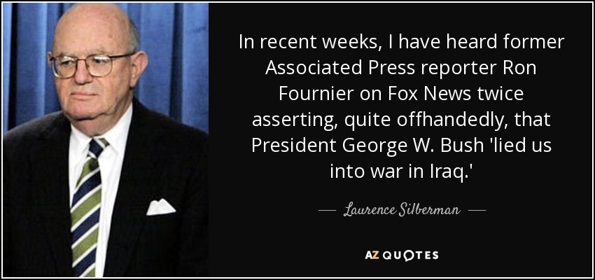 In recent weeks, I have heard former Associated Press reporter Ron Fournier on Fox News twice asserting, quite offhandedly, that President George W. Bush 'lied us into war in Iraq.'