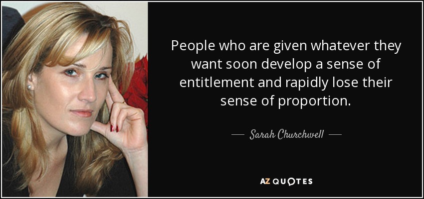 People who are given whatever they want soon develop a sense of entitlement and rapidly lose their sense of proportion.
