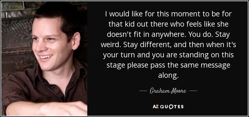 I would like for this moment to be for that kid out there who feels like she doesn't fit in anywhere. You do. Stay weird. Stay different, and then when it's your turn and you are standing on this stage please pass the same message along.