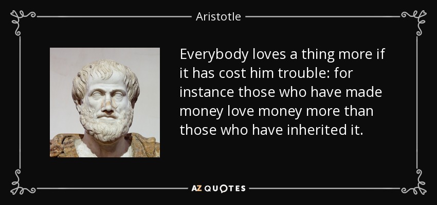 Everybody loves a thing more if it has cost him trouble: for instance those who have made money love money more than those who have inherited it.