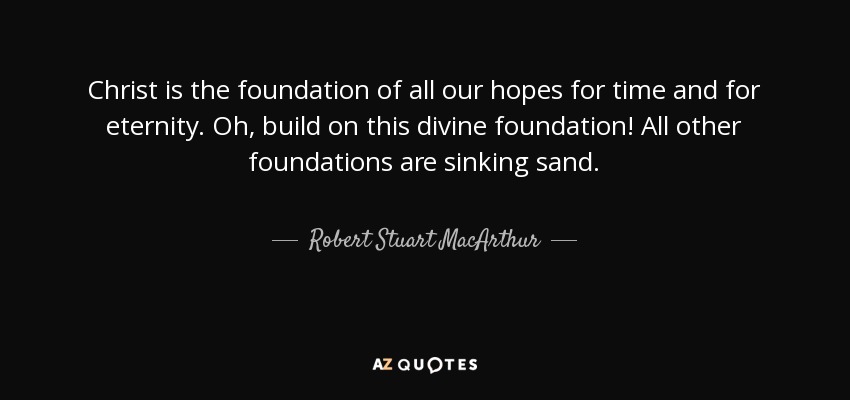 Christ is the foundation of all our hopes for time and for eternity. Oh, build on this divine foundation! All other foundations are sinking sand.