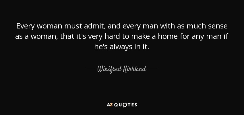 Every woman must admit, and every man with as much sense as a woman, that it's very hard to make a home for any man if he's always in it.
