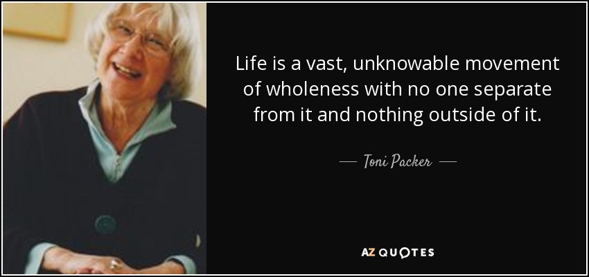 Life is a vast, unknowable movement of wholeness with no one separate from it and nothing outside of it.