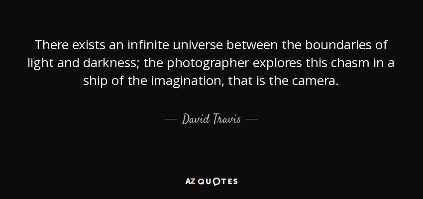There exists an infinite universe between the boundaries of light and darkness; the photographer explores this chasm in a ship of the imagination, that is the camera.