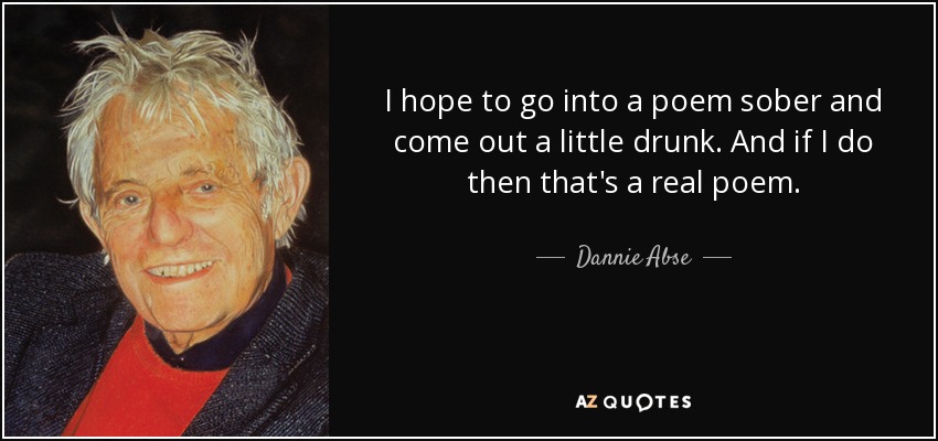 I hope to go into a poem sober and come out a little drunk. And if I do then that's a real poem.