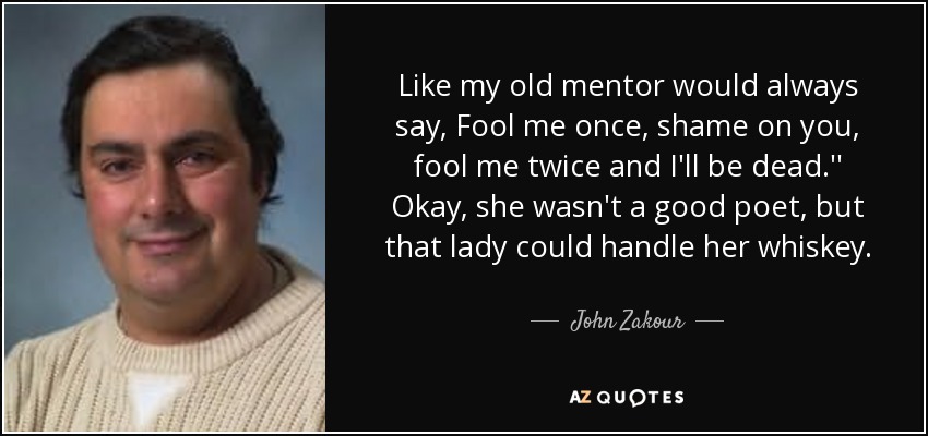 Like my old mentor would always say, Fool me once, shame on you, fool me twice and I'll be dead.'' Okay, she wasn't a good poet, but that lady could handle her whiskey.