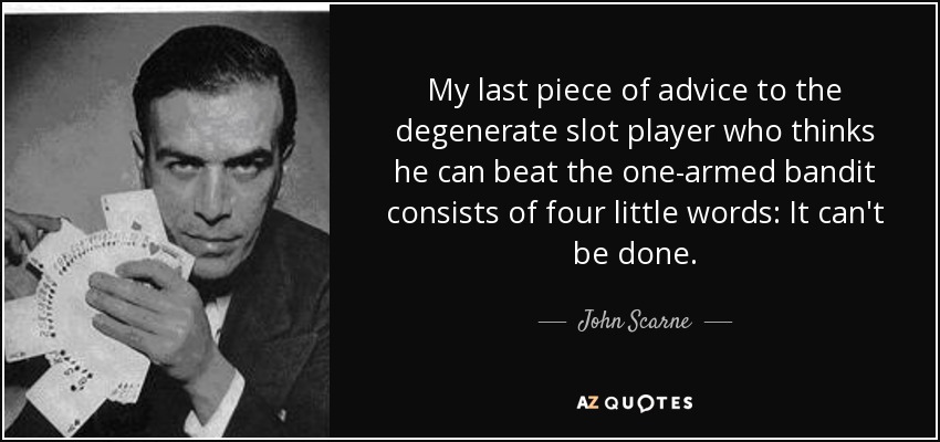 My last piece of advice to the degenerate slot player who thinks he can beat the one-armed bandit consists of four little words: It can't be done.