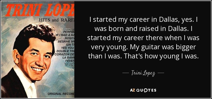 I started my career in Dallas, yes. I was born and raised in Dallas. I started my career there when I was very young. My guitar was bigger than I was. That's how young I was.