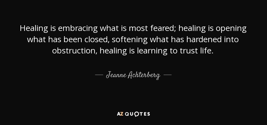 Healing is embracing what is most feared; healing is opening what has been closed, softening what has hardened into obstruction, healing is learning to trust life.