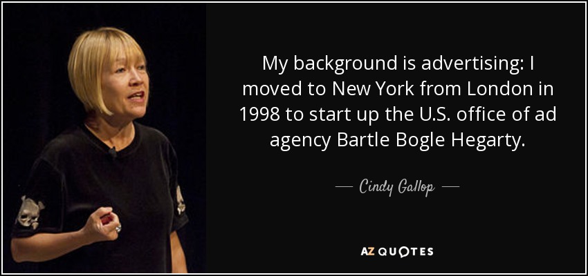 My background is advertising: I moved to New York from London in 1998 to start up the U.S. office of ad agency Bartle Bogle Hegarty.