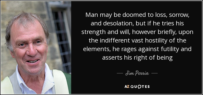 Man may be doomed to loss, sorrow, and desolation, but if he tries his strength and will, however briefly, upon the indifferent vast hostility of the elements, he rages against futility and asserts his right of being
