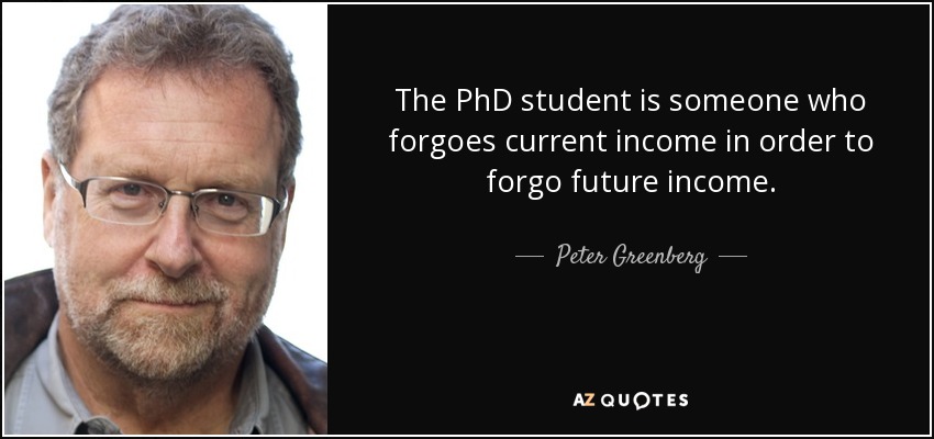 The PhD student is someone who forgoes current income in order to forgo future income.