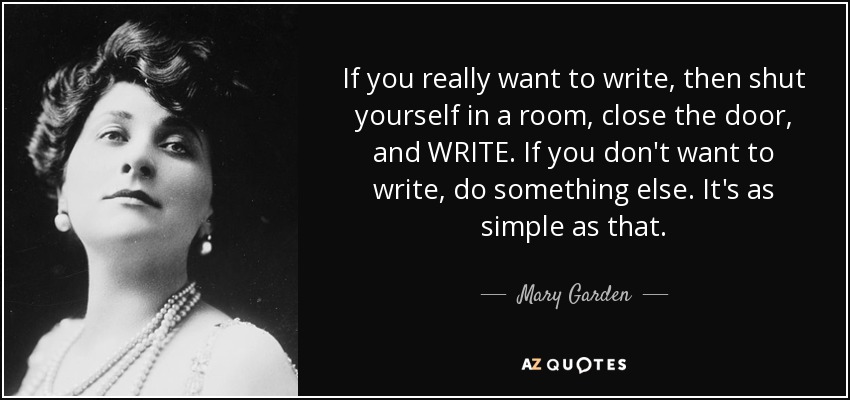 If you really want to write, then shut yourself in a room, close the door, and WRITE. If you don't want to write, do something else. It's as simple as that.