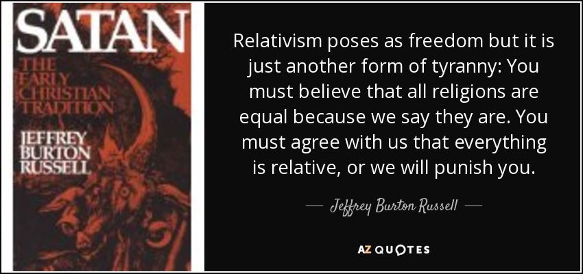 Relativism poses as freedom but it is just another form of tyranny: You must believe that all religions are equal because we say they are. You must agree with us that everything is relative, or we will punish you.